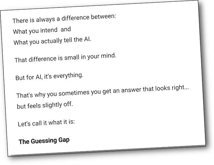 In simple terms, the “Guessing Gap” happens when your prompt leaves out details that feel obvious to you—but aren’t actually stated.